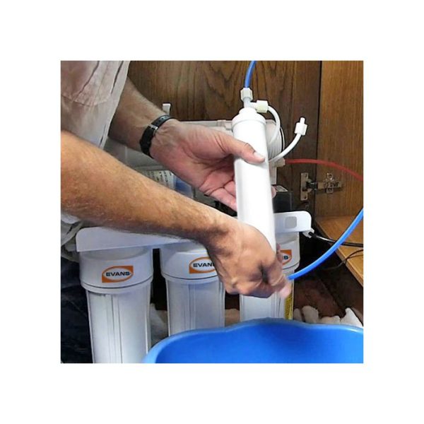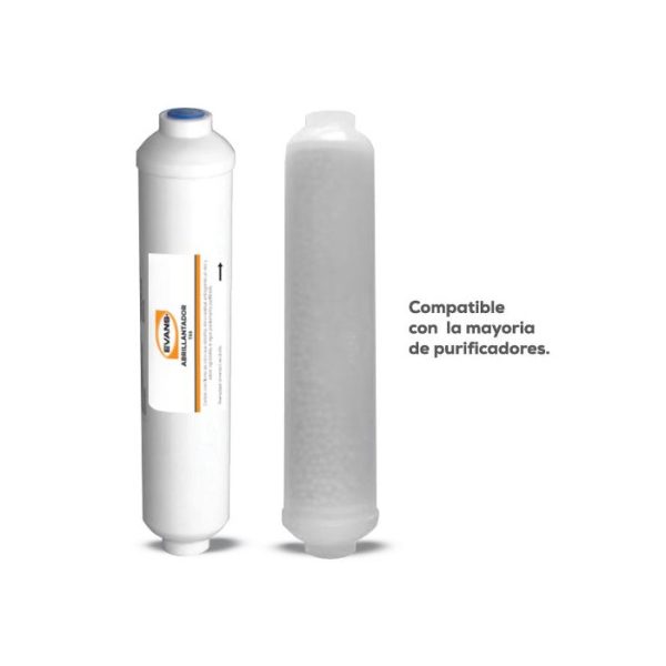 Filtro abrillantador de agua de carbón activado y con conexiones rápidas.